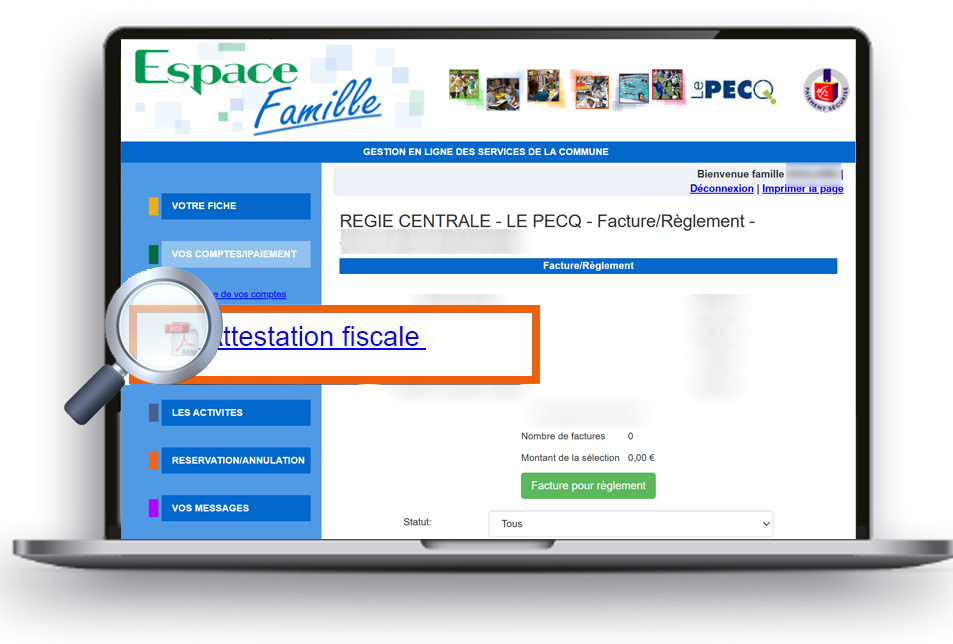Pour la télécharger, rendez-vous dans la rubrique VOS COMPTES / IPAIEMENT et cliquez sur Attestation fiscale (en haut à gauche).