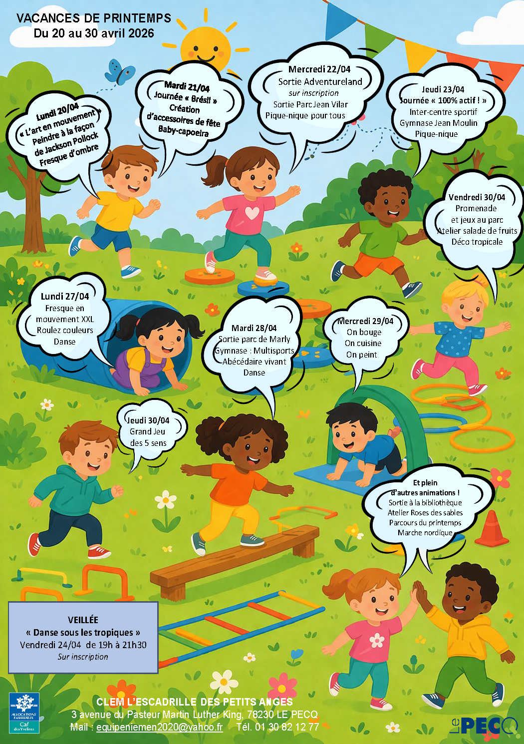 Les vacances de printemps, débuteront lundi 20 avril dans nos accueils de loisirs. Voici la répartition dans les différentes structures municipales :